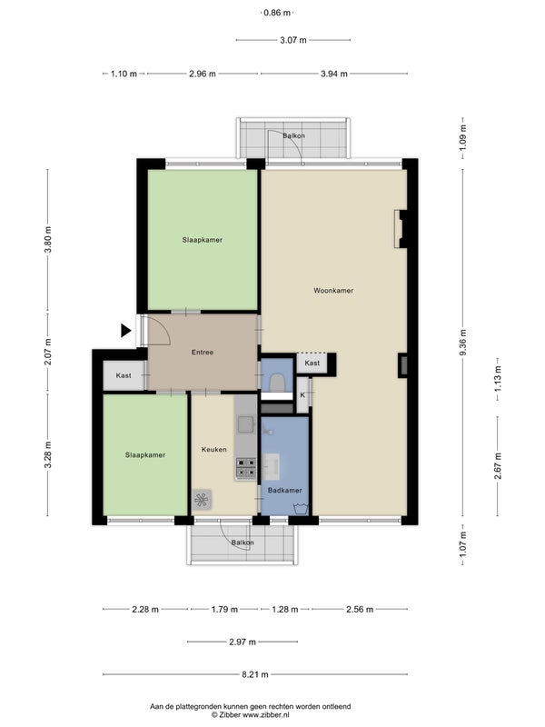 - De galerijflat heeft een woonoppervlakte van 70 m² en beschikt over 3 kamers, waarvan 2 slaapkamers;