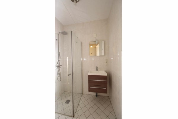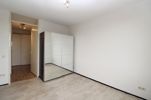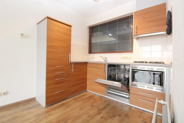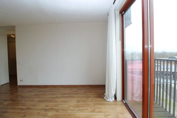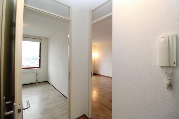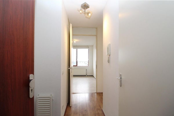 Via de voordeur kom je in de ruime hal met toegang tot de badkamer, het aparte toilet, bergkast en de slaap en woonkamer. De ruime badkamer heeft een wastafelmeubel en een douchehoek. In de inpandige bergkast hangt de cv-ketel en is de wasmachine opgesteld. De woonkamer is door de schuifpui met balkon op het westen heerlijk licht en vanuit hier heeft u een mooi uitzicht op het winkelcentrum. De open keuken in een L-opstelling is compleet met een 4 pits gaskookplaat, oven, afzuigkap, koel-vries combinatie.