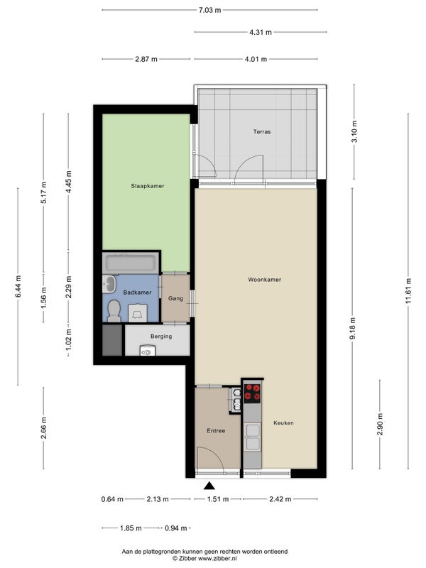 - De galerijflat heeft een woonoppervlakte van 59 m² en beschikt over 2 kamers, waarvan 1 slaapkamer;
