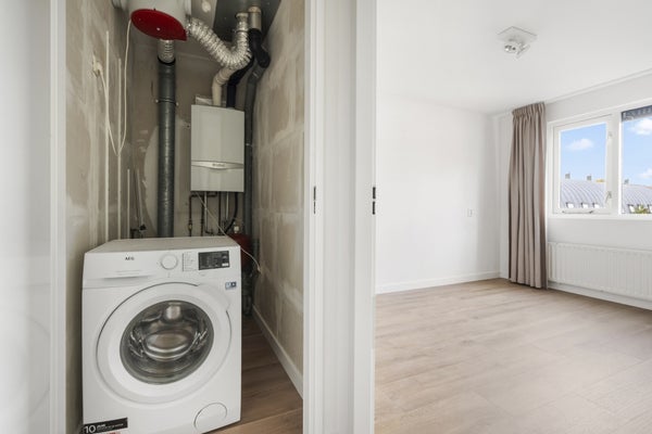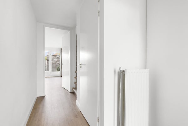 Op de begane grond vind je de entree, het toilet met fonteintje en de trap naar de eerste verdieping. De lichte woonkamer ligt aan de achterzijde en biedt direct toegang tot de zonnige achtertuin op het noordwesten, compleet met achterom en houten berging. De halfopen keuken aan de voorzijde is voorzien van moderne inbouwapparatuur, zoals een koel-/vriescombinatie, combimagnetron, vaatwasser, gaskookplaat en afzuigkap. Op de eerste verdieping bevinden zich drie slaapkamers en een moderne, ruime badkamer met ruime inloopdouche, toilet en dubbele wastafel.