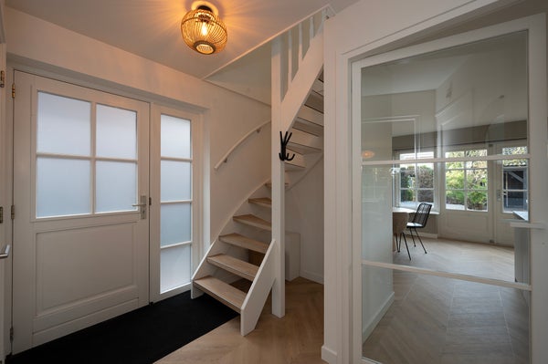 Bij binnenkomst stapt u de ruime hal binnen, welke toegang biedt tot het toilet, de trap naar boven en de woonkamer. De woonkamer is smaakvol ingedeeld en valt direct op door de grote ramen die zorgen voor veel natuurlijk licht. De moderne afwerking maakt het een fijne en uitnodigende leefruimte. Aangrenzend bevindt zich de keuken, afgesloten door een stijlvolle glazen deur. De keuken is modern, volledig vernieuwd en voorzien van hoogwaardige inbouwapparatuur: oven, stoomoven, wijnklimaatkast, vaatwasser, inductiekookplaat, afzuigkap, koelkast en vriezer. Via de keuken bereikt u de verzorgde achtertuin. Deze tuin is maar liefst 10 meter breed en 35 meter diep, waardoor u volop ruimte heeft om buiten te genieten. Achterin de tuin vindt u een ruime schuur van 6 x 8 meter, met een fijne overkapping. Ideaal om fietsen en gereedschap veilig op te bergen of als extra hobby-/opslagruimte te gebruiken. De gehele woning is recent compleet vernieuwd en beschikt overal over vloerverwarming, wat zorgt voor optimaal wooncomfort.