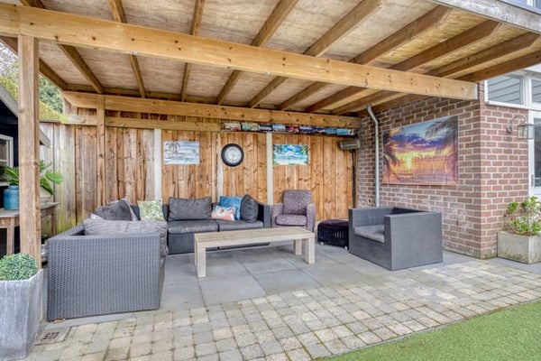 Begane grond; entree, toilet, woonkamer met open keuken. De keuken is voorzien van diverse inbouwapparatuur. Via de keuken kom je in de bijkeuken waar ook de aansluiting van de wasmachine en droger zich bevindt. Tuin met overkapping, schuur.