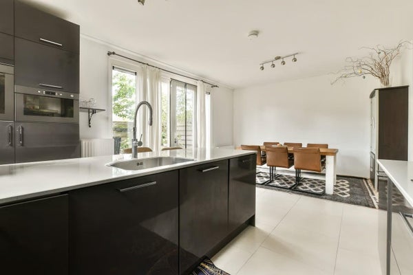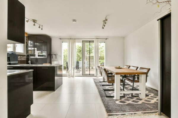 De open eetkeuken is werkelijk het hart van het huis. Deze ruimte is ontworpen voor zowel koken als gezelligheid, met inbouw apparatuur en een overvloed aan opbergruimte en je kan er met gemak een grote eettafel met voldoende stoelen kwijt. Stel je voor dat je 's morgens geniet van een kopje koffie terwijl het zonlicht binnenstroomt, of 's avonds heerlijke maaltijden deelt met vrienden en familie aan die grote eettafel. De tuindeuren en puien bieden een prachtig uitzicht op de tuin rondom, die uitnodigt tot ontspannende momenten in de buitenlucht, met de geur van bloeiende bloemen in de lente of de gouden herfstbladeren in de herfst.