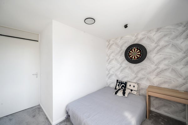 De eerste verdieping beschikt over vier ruime kamers, waarvan er drie zijn ingericht als slaapkamer en één als werk- of logeerruimte. De complete badkamer is uitgevoerd in moderne grijstinten en biedt een hoog comfortniveau.