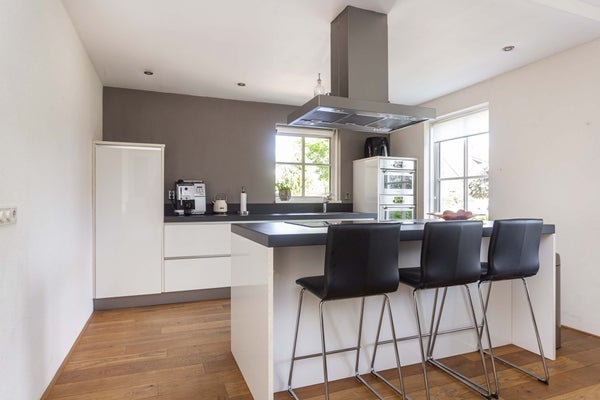 Via de voortuin met ruime oprit met een elektrisch oplaadstation, bereikt men de entree van de woning. Binnenkomst in hal met toegang tot de meterkast, toilet, trapkast, trapopgang naar boven, keuken en woonkamer. Ruime U-vormige living met aan de voorzijde een fijne eethoek en aan de achterzijde het zitgedeelte. De woonkamer is bijzonder ruim en door de vele ramen is er een prettige lichtinval. De keuken is aan de voorzijde geplaatst in een praktische opstelling en voorzien van diverse inbouwapparatuur zoals een koel-vriescombinatie, kookplaat, oven, vaatwasser en afzuigkap. Vanuit de hal is er toegang tot de handige bijkeuken met de opstelplaats van de was-droogcombinatie en tevens een aparte kantoorruimte. Vanuit de kantoor ruimte is er toegang tot de garage. Dit is een ideale ruimte voor het opbergen en bewaren van spullen.