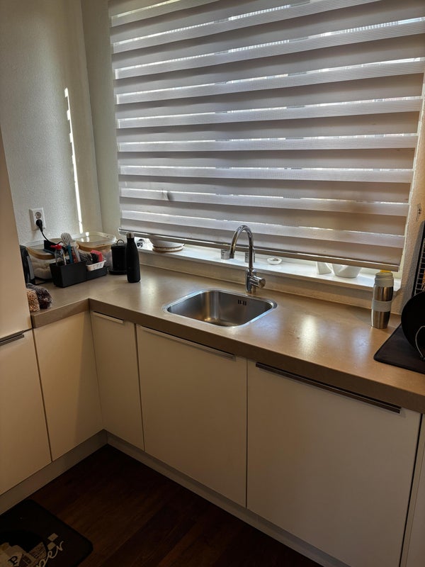 De begane grond biedt een stijlvolle, volledig ingerichte woonkeuken, versterkt door grote ramen die de ruimte overspoelen met natuurlijk licht. De keuken is goed uitgerust met een koel-vriescombinatie, kookplaat, afzuigkap, combi-oven, vaatwasser en voldoende opbergruimte. De open indeling loopt naadloos over in een ruime woonkamer, compleet met een comfortabele bank, tv en eettafel – ideaal om te ontspannen of gasten te ontvangen.
