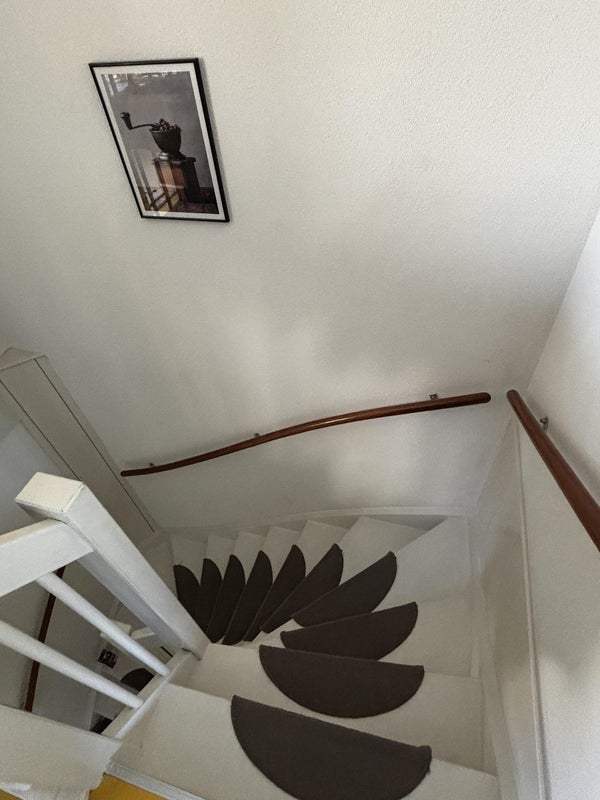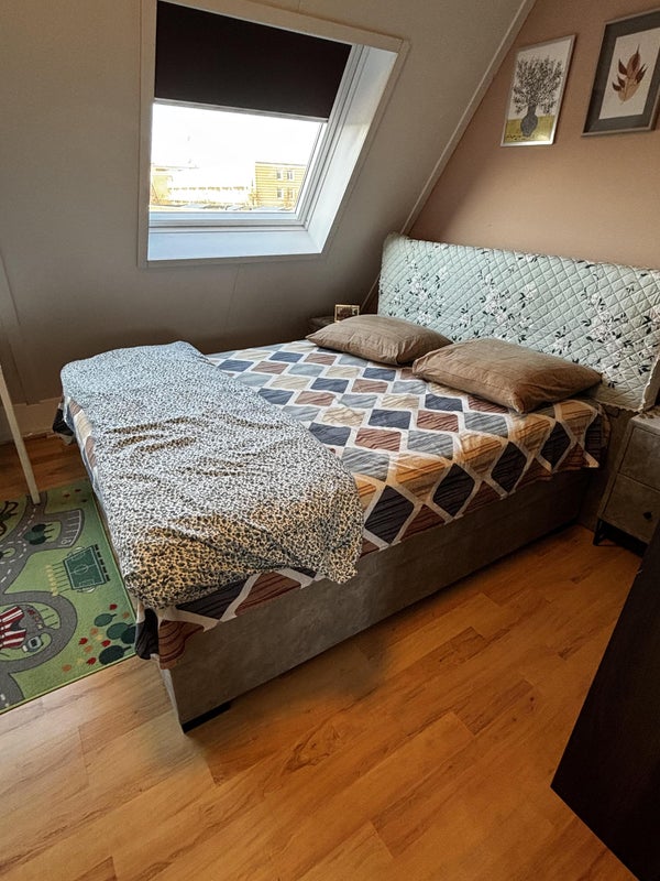 De bovenverdieping beschikt over een ruime slaapkamer, een open ruimte met een wasmachine en een kleine, praktische berging.