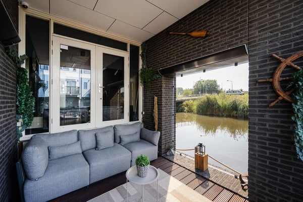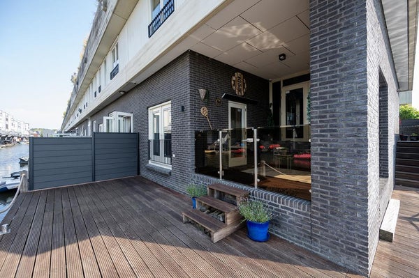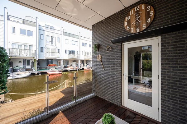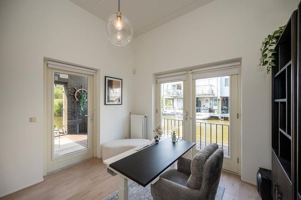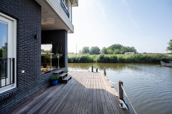 Grenzend aan de werkkamer is een overdekt terras, uitgerust met glazen windschermen en elektrische terrasverwarming, wat ervoor zorgt dat u het hele jaar door comfortabel buiten kunt zitten. Het terras biedt een schitterend uitzicht over het water en geeft toegang tot de steiger, zowel aan de achterzijde als zijkant van de woning. Hier heeft u een eigen aanlegplaats voor een boot, waarmee u gemakkelijk kunt genieten van vaartochten in de omgeving van Almere en de Randmeren. De ruime steiger van meer dan 30 m² biedt volop gelegenheid om te ontspannen en te genieten van het uitzicht op het water en de omliggende natuur.