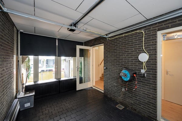 Entree, gang, trappenhuis en een inpandige berging aan de voorzijde, voorzien van een eigen toegangsdeur. Tevens is er een royale, overdekte carport die voldoende ruimte biedt voor het parkeren van een boot op trailer, een auto, caravan of camper. Aan de achterzijde bevindt zich een werkkamer of praktijkruimte, compleet met een eigen ingang. Deze ruimte grenst direct aan de steiger en is bijzonder door de indrukwekkende plafondhoogte van 3,44 meter, doordat het lager gelegen is dan de rest van de woning.