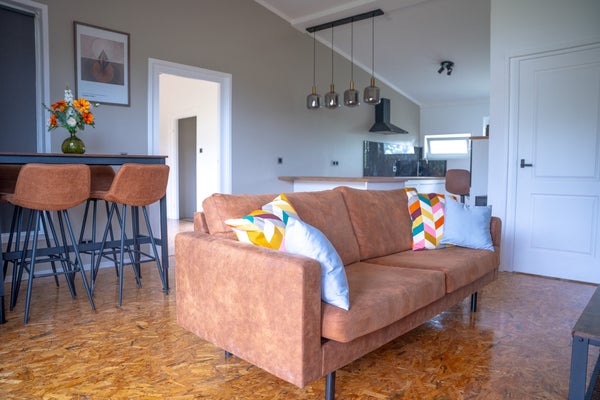 De ruime woonkamer met grote openslaande deuren zorgt voor veel lichtinval en een aangename sfeer. De moderne open keuken is compleet ingericht, zodat u direct kunt koken en genieten. De woning beschikt over twee comfortabele slaapkamers, waarvan één als kantoor is ingericht. Deze kamer is flexibel in te richten. Ook is er een stijlvolle badkamer met moderne inloopdouche, wc en sauna. De woning is omringt door een zeer ruime tuin rondom.