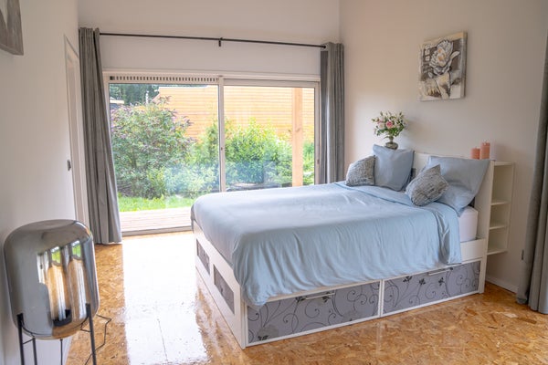 Splinternieuwe, luxe bungalow in Oosterwold, Almere. Volledig gemeubileerd, met sauna, vloerverwarming. Ideaal voor expats, tijdelijke overbrugging of wonen in het unieke groene woongebied van Almere.