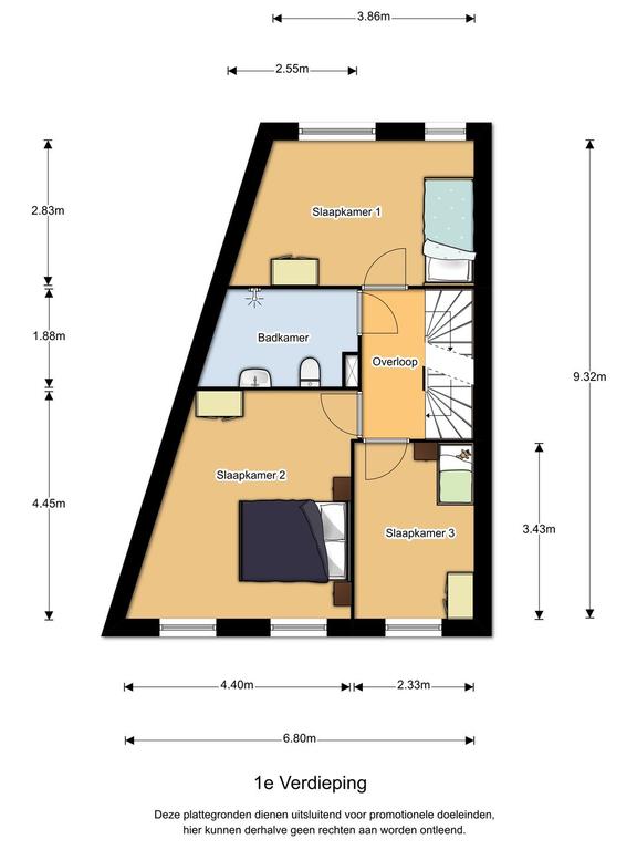 Aan de tuinzijde twee heerlijke slaapkamers, centraal in het midden de badkamer met wastafel, douche en tweede toilet, aan de voorzijde nog een royale slaapkamer.