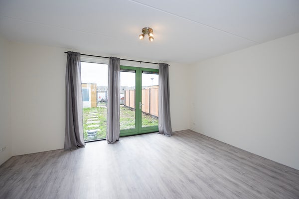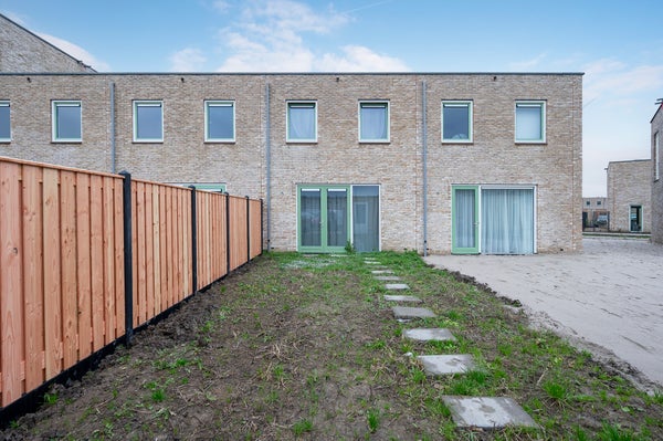 De achtertuin biedt veel privacy en rust en is direct toegankelijk via de schuifpui in de woonkamer, ideaal om in alle seizoenen van het buitenleven te genieten.