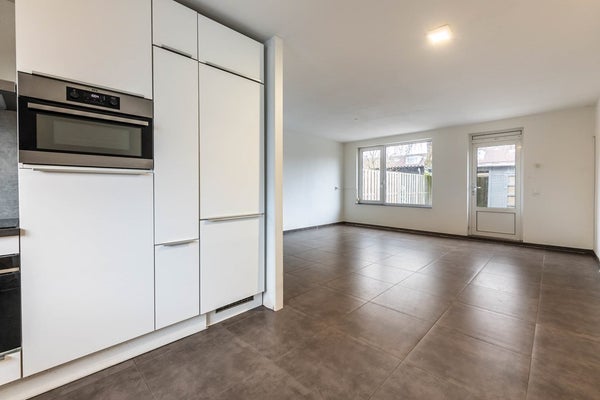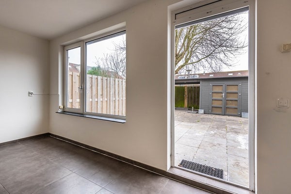Terwijl je verder door het huis gaat, kom je in de heldere en ruime woonkamer met een open keuken. De keuken is uitgerust met inbouwapparatuur en biedt voldoende werkruimte en opslag. Grote ramen zorgen voor veel natuurlijk licht en een prachtig uitzicht op de royale achtertuin. De tuin bevat ook een grote schuur, perfect voor opslag, fietsen of hobby's.