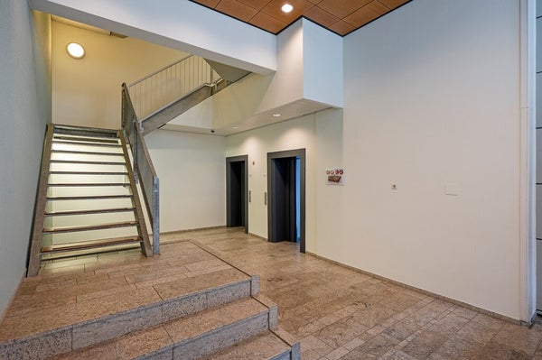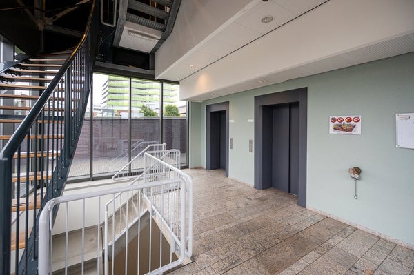 Centrale entree met bellentableau/videofoon, brievenbussen, gesloten portiek met trapopgang en twee liften.
