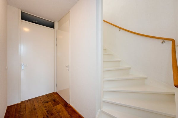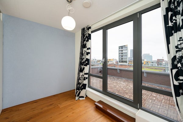 Via de trap komt u op de overloop van de tweede verdieping. Deze verdieping heeft twee slaapkamers. De kleinste kamer biedt toegang tot een ruim dakterras welke aan de voorzijde van de woning is gelegen.