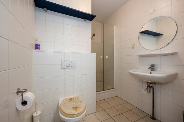 Op deze verdieping is een tweede badkamer aanwezig. Deze badkamer is voorzien van een toilet, wastafel en douche.