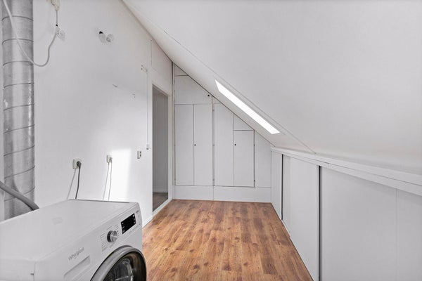 Via de vaste trap bereik je de zolder die voorzien is van een groot dakkapel met kunststof kozijnen. Ook is er veel bergruimte in een apart gedeelte waar een wasmachine staat en plek om kleding te drogen.