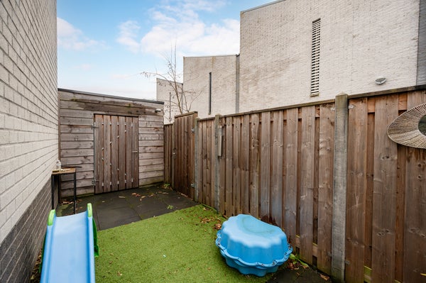 De woning beschikt over een achter- en zijtuin welke, door de betegeling en kunstgras, geheel onderhoudsvriendelijk is. De tuin heeft via een poort toegang tot de achterom. In de tuin bevindt zich een houten berging.