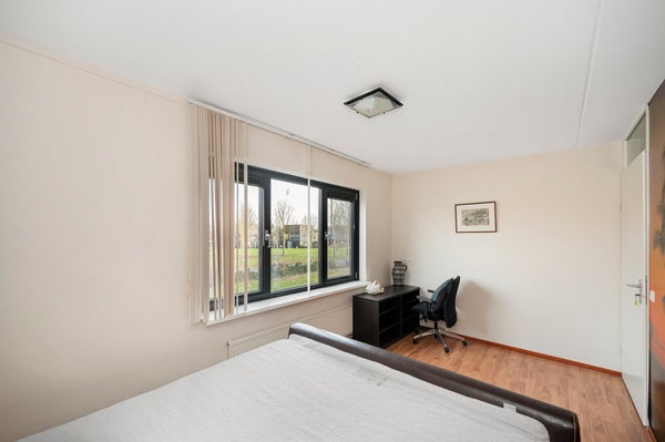 Daarnaast beschikt deze verdieping over een ruime slaapkamer. Deze slaapkamer grenst aan de badkamer, die is uitgerust met een douche, toilet en wastafel. Door de slimme indeling en het gebruik van licht en ruimte biedt deze verdieping volop mogelijkheden om het geheel volledig aan te passen aan uw persoonlijke woonwensen.