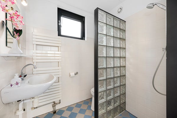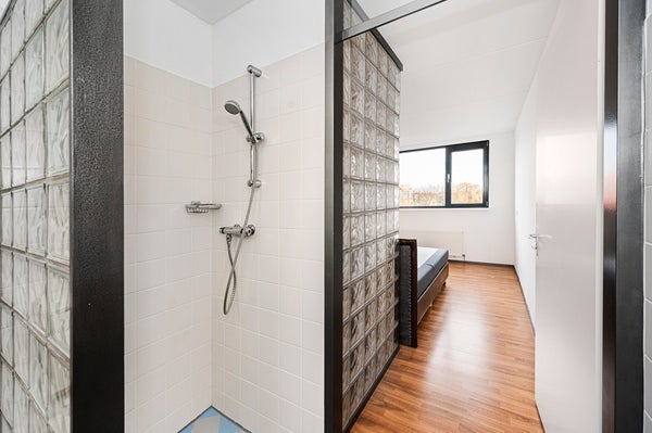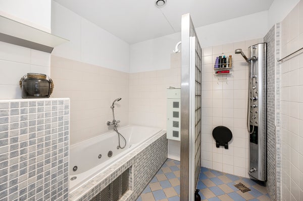 De badkamer is vrijwel volledig betegeld. U beschikt over een ligbad met jetstream, een separate douche, een modern hangend toilet en een wastafel met meubel. Daarnaast zijn er op deze verdieping drie slaapkamers, die elk flexibel zijn in te delen.