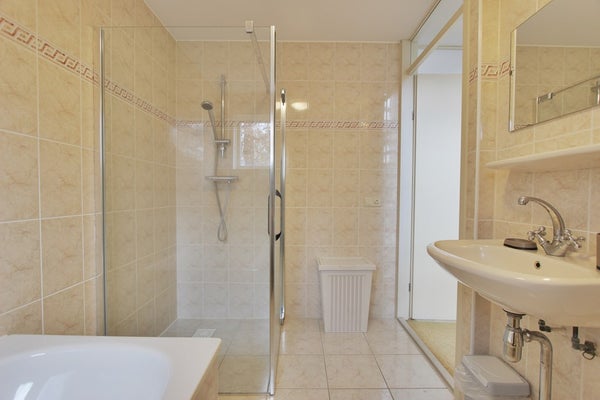 Op de eerste verdieping onthult het huis zijn ware veelzijdigheid, met drie ruime slaapkamers en een weelderige badkamer die uitnodigt tot ontspanning na een lange dag. Een tweede toilet, badkuip en douche bieden alle luxe die je maar kunt wensen, terwijl het raam zorgt voor een verfrissende dosis frisse lucht.
