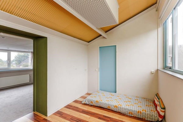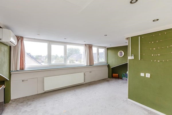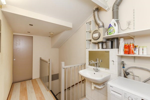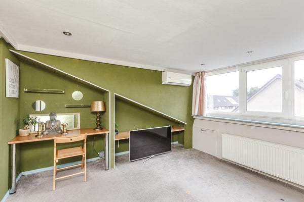 Ruime zolderverdieping met dakkapel, airconditioning, wasmachineaansluiting en een aparte wastafel. Deze verdieping biedt veel extra leefruimte en is multifunctioneel te gebruiken.