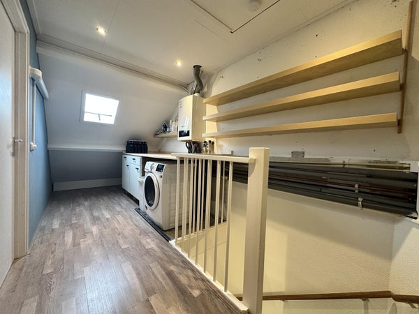 Tweede verdieping: Voorzolder met opbergruimte en aan de andere kant de aansluiting voor de wasmachine en droger. Vierde slaapkamer aan de voorzijde gelegen. Vijfde slaapkamer aan de achterzijde gelegen.