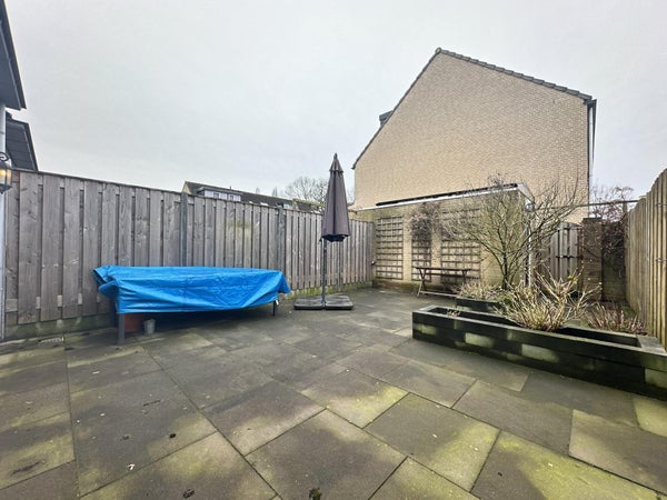 Buiten: Ruime achtertuin waar heerlijk in de zon gezeten kan worden. De tuin is via het achterom bereikbaar. Aparte stenen schuur, ideaal voor de opslag van spullen.