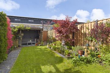 Vanuit de woonkamer stap je de diepe achtertuin in. Deze is gelegen op het zuiden en is keurig aangelegd met sierbestrating, gazon en borders met diverse vaste beplanting. Daarnaast is er achterin de tuin nog een gezellige veranda geplaatst, waar je heerlijk kunt vertoeven.