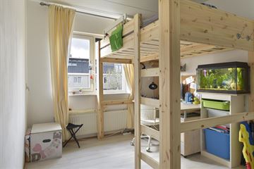 Op de eerste verdieping tref je drie slaapkamers, de badkamer en een vaste kast op de overloop. De slaapkamers zijn ieder van een goed formaat, hebben een fijne lichtinval en zijn netjes afgewerkt met lichte wanden en laminaat op de vloer.