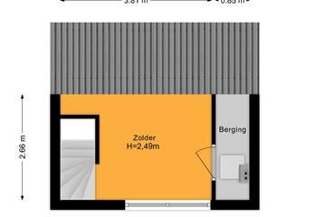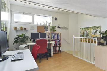 Een vaste trap geeft je toegang tot de tweede verdieping. Hier vind je een open ruimte welke in gebruik is als slaapkamer en vanuit waar je toegang hebt tot een inpandige berging met daarin de cv opstelling en de aansluitingen voor het witgoed.