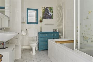 De badkamer is netjes en hier ben je voorzien van een tweede toilet, wastafel en een ligbad met douchemogelijkheid.