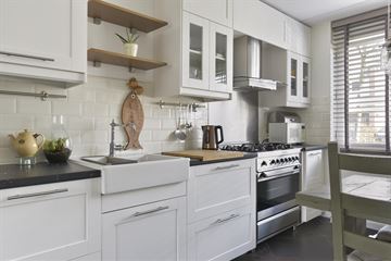 In de woonkamer is voldoende ruimte voor een grote zithoek en de eethoek kun je in de open keuken plaatsen. De keuken zelf is gesitueerd aan de voorzijde van het huis. De keuken is geplaatst in een rechte wandopstelling en is afgewerkt met lichte fronten. De keuken bied je voldoende kast- en werkruimte en uiteraard is deze ook voorzien van de nodige inbouwapparatuur.
