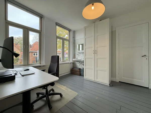 Te huur van 21-02-2026 tot 20-08-2026: een sfeervolle woning met karakteristische elementen, gemeubileerd en met een eigen oprit voor 1 of 2 auto’s. Gelegen aan de Leusderweg, dichtbij winkels, supermarkten en openbaar vervoer, is het historische centrum van Amersfoort en de A28/A1 snel bereikbaar. De woning heeft een mooie hal, ruime doorzon woonkamer met veel lichtinval en openslaande deuren naar de achtertuin. De aparte keuken beschikt over een vaatwasser, oven en gaskookplaat. Op de eerste verdieping zijn drie slaapkamers en een nette badkamer met inloopdouche. De tweede verdieping heeft twee slaapkamers. De achtertuin heeft een overkapping en is bereikbaar via de oprit. Bij huurovereenkomst zorgt de huurder voor de kat van de verhuurder. Geen inschrijving mogelijk.