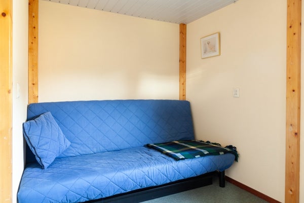 Hier bevinden zich twee slaapkamers en een tweede badkamer. De slaapkamer gelegen aan de achterzijde van de woning is ingericht als werkkamer met een slaapbank. De tweede badkamer heeft een inloopdouche, wastafel met meubel en toilet.