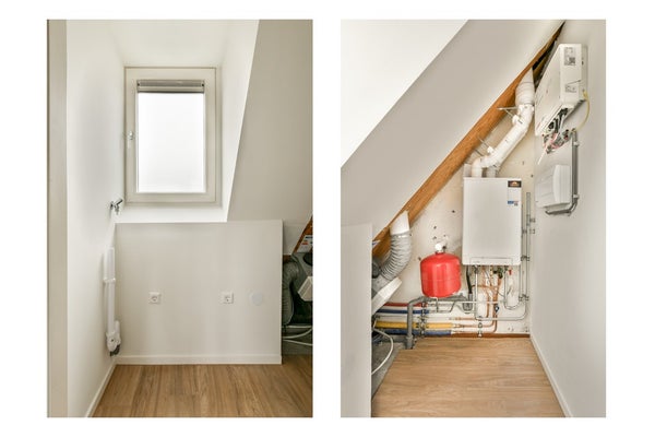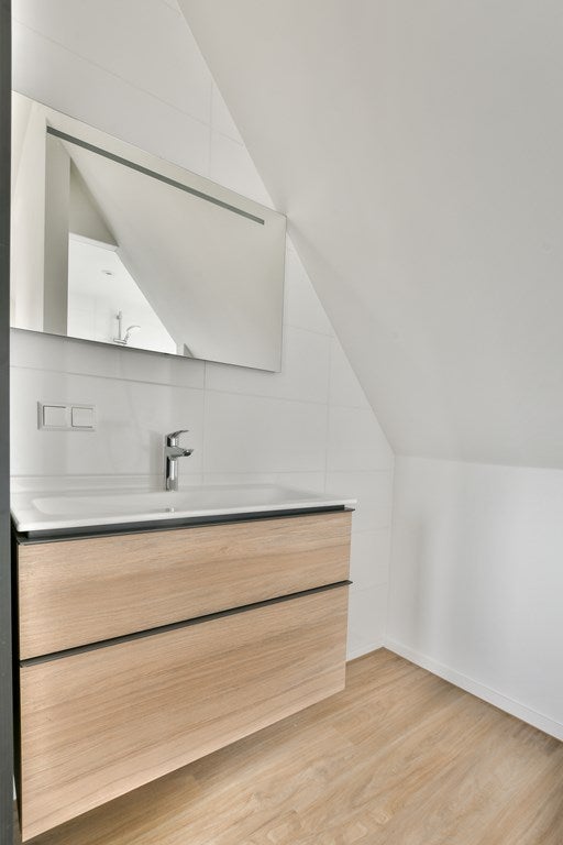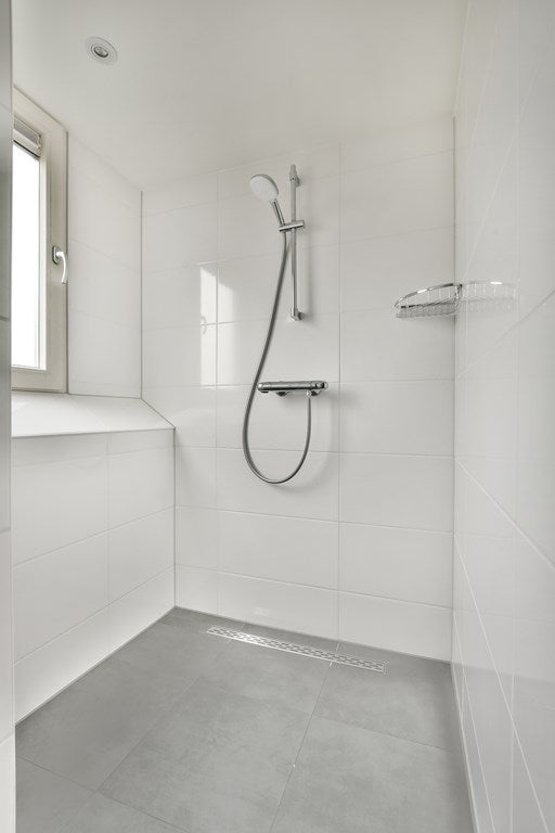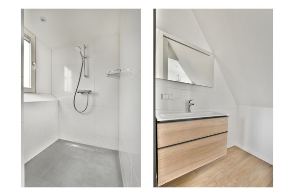De bovenste etage is bereikbaar via een vaste trap. Hier bevindt zich de master slaapkamer met dakkapel en een tweede badkamer, ingericht met een inloopdouche en een wastafelmeubel.