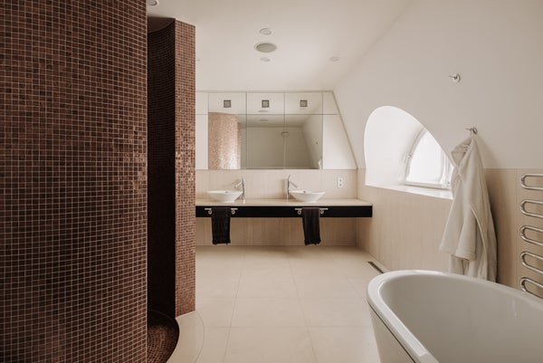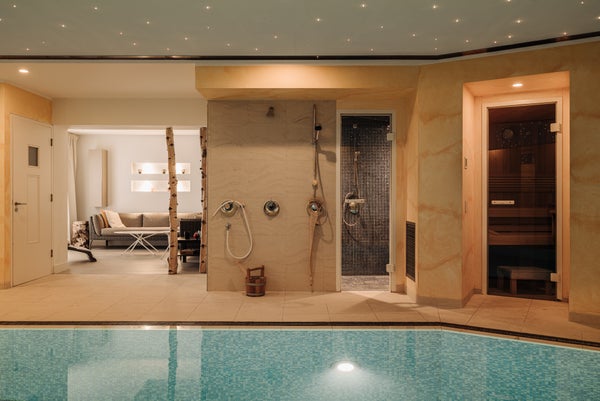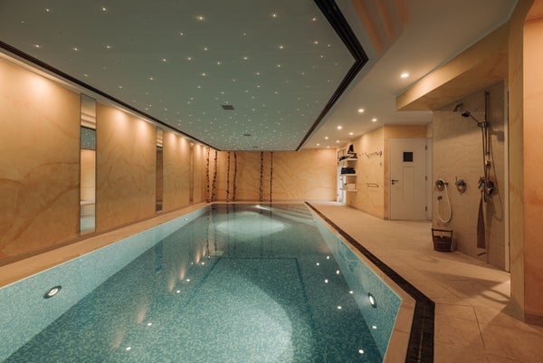 Totaal 10 vertrekken, vier badkamers, wijnkelder, gym, wellness (compleet met een binnenzwembad) en een kantoor met eigen aparte ingang.