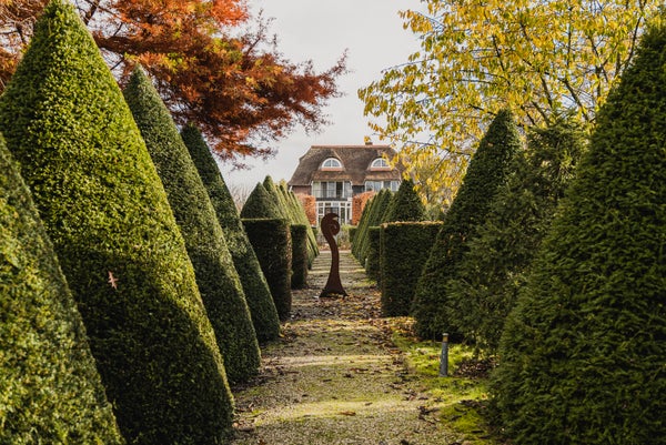 Het huis met bijhuis is in 2002 gebouwd en in het ontwerp zijn de zichtlijnen medebepalend geweest. Bij het ontwerp van zowel het huis als het bijgebouw is heel goed nagedacht over de omgeving en de aan te leggen parktuin.
