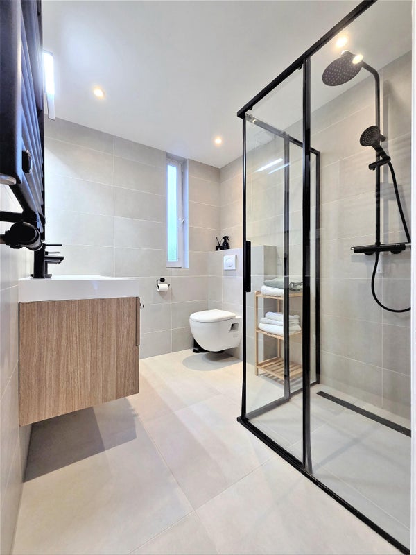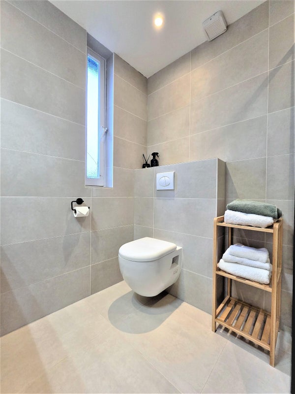 Op de eerste verdieping bevinden zich drie slaapkamers, waarvan twee zeer ruime kamers. Hier vind je tevens de badkamer met inloopdouche, dubbele wastafel met meubel en een tweede toilet.