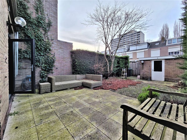 De open keuken is modern en volledig uitgerust met alle inbouwapparatuur. Vanuit het eetgedeelte loop je via de schuifpui de ruime achtertuin van ca. 70 m² in, waar een praktische stenen berging aanwezig is. Ook via een deur vanuit de keuken is de tuin bereikbaar.