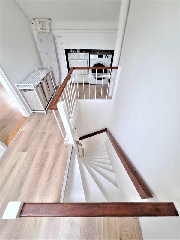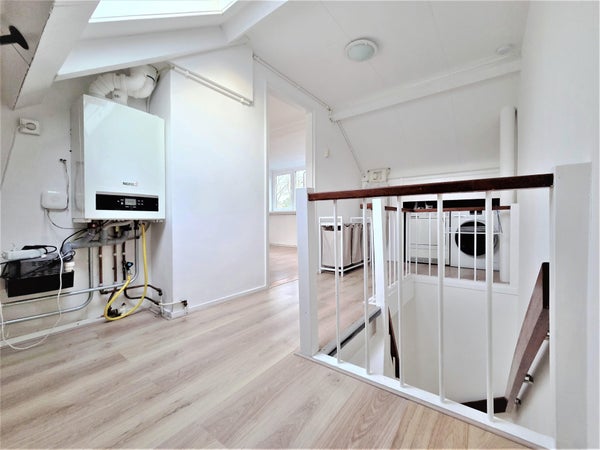 De royale tweede verdieping is voorzien van twee nieuwe dakkapellen, waardoor de ruimte licht en luchtig aanvoelt. Op deze verdieping is ook de opstelling voor wasmachine en droger netjes weggewerkt in een aparte kast.