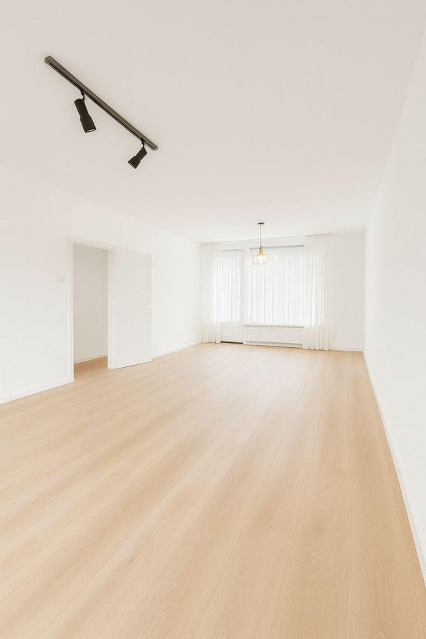 De doorzonwoonkamer strekt zich uit van de voor- tot de achterzijde van de woning en biedt veel natuurlijk licht.