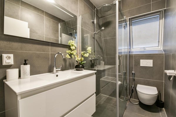 Eerste etage: overloop met toegang tot de 3 ruime slaapkamers en luxe afgewerkte badkamer voorzien van dubbele wastafel, inloop douche, designradiator en toilet. De ruime hoofd slaapkamer is voorzien van airconditioning en inloop kastenwand met veel bergruimte.