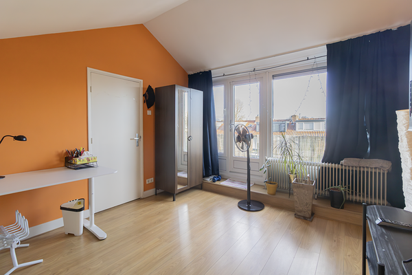 De eerste verdieping beschikt over 3 slaapkamers. De grote slaapkamer is voorzien van een tweepersoonsbed en een ruime kledingkast. De tweede slaapkamer is ingericht met een eenpersoonsbed, een inbouwkast en een werkplek. De derde slaapkamer kan gebruikt worden als thuiskantoor of als babykamer. De badkamer is voorzien van een ligbad, toilet en wastafel met wastafelmeubel. Via de vaste trap is de tweede verdieping bereikbaar en hier bevindt zich een ruime vierde slaapkamer met toegang tot het dakterras. Op deze verdieping bevindt zich ook een tweede badkamer met een douche en wastafel.