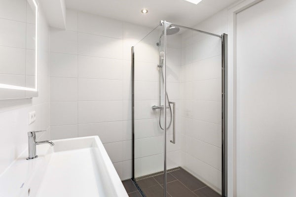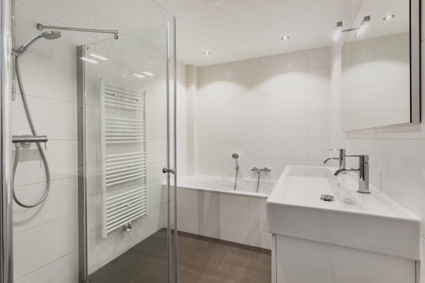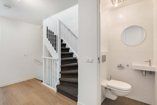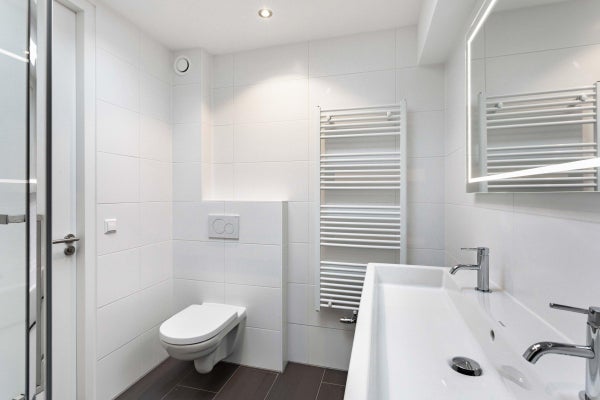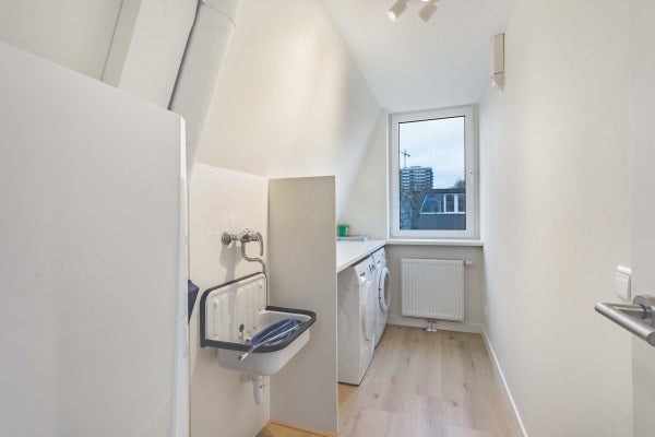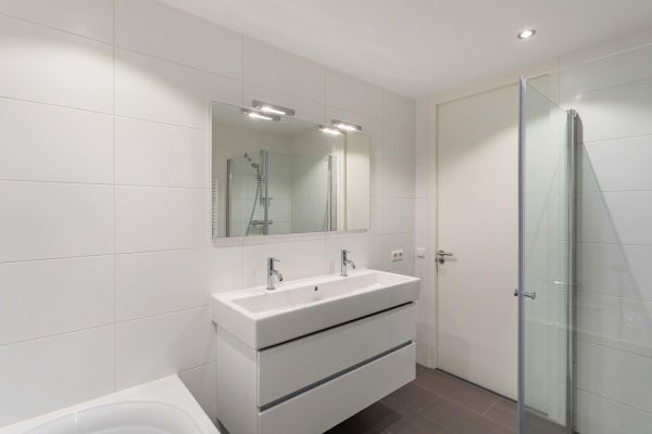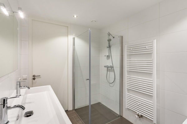 Op de eerste verdieping bevinden zich drie slaapkamers en een moderne badkamer met inloopdouche, wastafel met meubel en designradiator. Op de tweede verdieping zijn nog twee ruime slaapkamers te vinden, evenals een tweede badkamer met ligbad, separate inloopdouche, dubbele wastafel en designradiator. Daarnaast is er een aparte wasruimte met wasmachine en droger aanwezig.