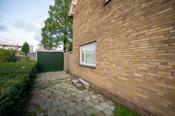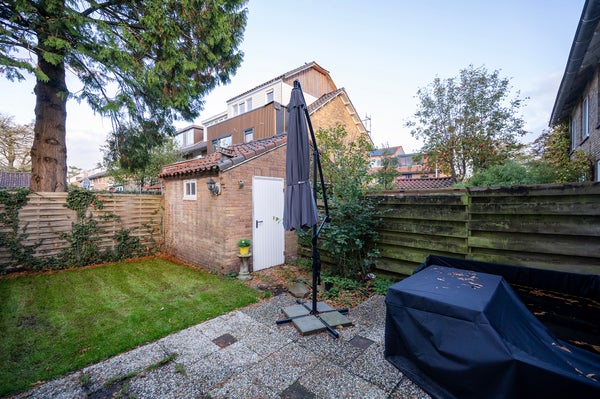 De tuin op het noorden is bereikbaar vanuit de ruime woonkamer en de keuken. Deze biedt een heerlijke buitenruimte met een schuur, garage en achterom. De oprit biedt plaats aan minimaal twee auto's en biedt extra parkeergemak.