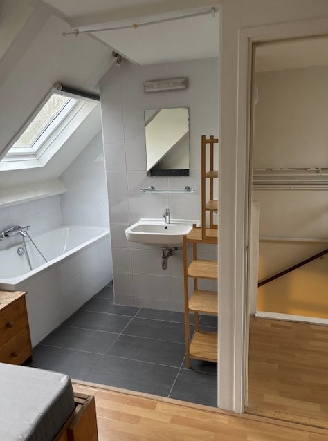 De tweede etage beschikt over een ruime slaapkamer met een badkamer ensuite, voorzien van een ligbad.
