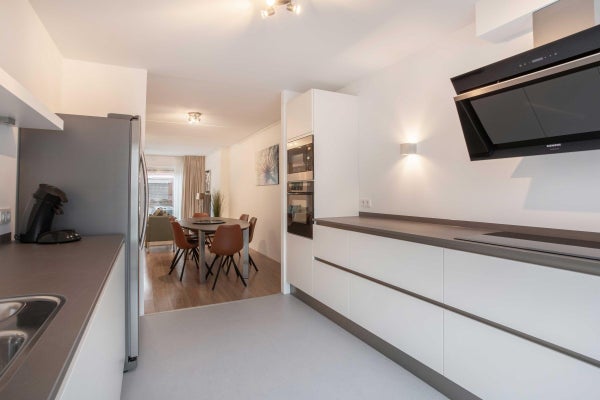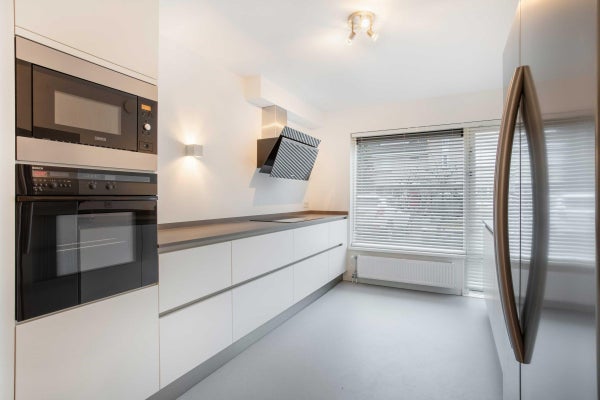 De woonkamer is aan de achterzijde met 2,40 m verlengd en er is een extra hoek/nis toegevoegd voor een klein kantoor of speelruimte. Deze indeling is uniek en samen met de mooie, ruime, zonnige keuken en de grote tuin biedt de begane grond een gelukkig thuis voor de moderne expat.