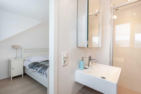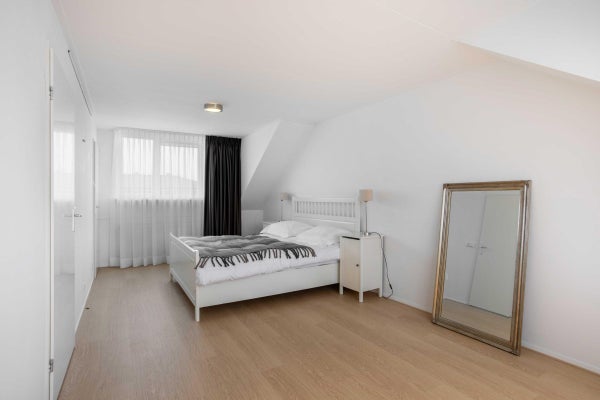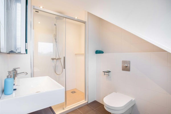 Deze loopt over in de tweepersoonsslaapkamer met eigen badkamer. De moderne badkamer is voorzien van een stoomcabine/douche, een wastafel en het derde toilet.
